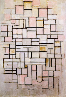 I know nothing about Mondrian, but have always loved his grid paintings. This series of paintings might explain why. Is it just me, or do they show an extraordinary exploration of portraying depth? I mean, isn't that what's coolest about the late paintings: that they pretend to be two dimensional when they dramatically represent three?